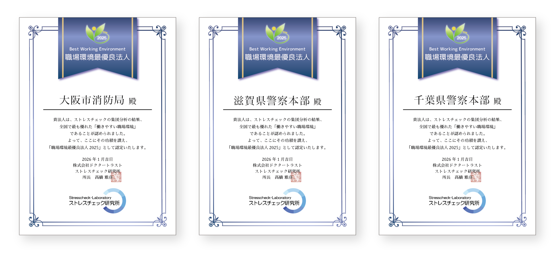 この分析の結果、規模別に職場環境が極めて優良であると評価された全国トップ3の組織を、第5回「職場環境最優良法人2025」として認定いたしました。